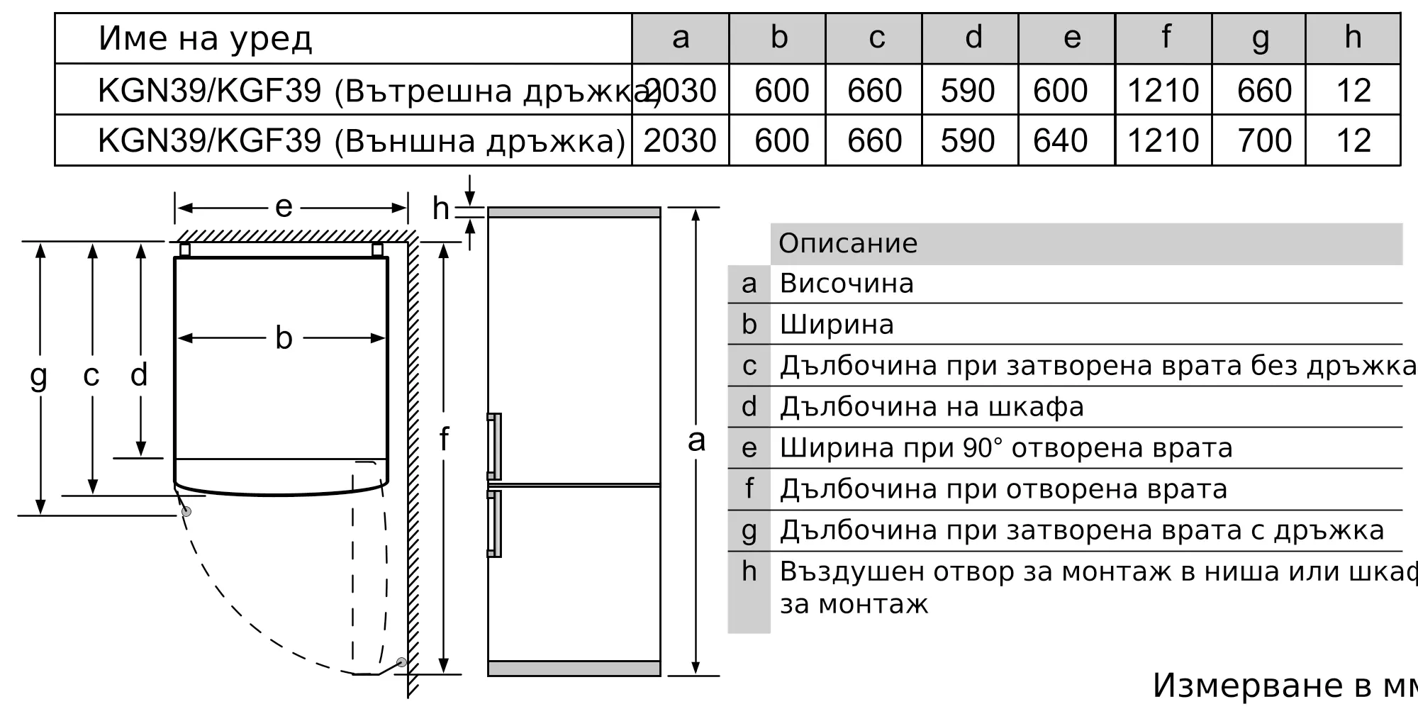 Размери на уреда